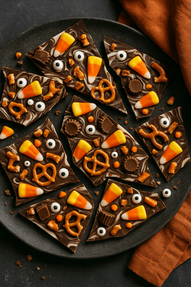 An over-the-top, colorful chocolate bark that turns leftover Halloween candy into the most snackable dessert on the table. Easy to make, impossible to stop eating. …