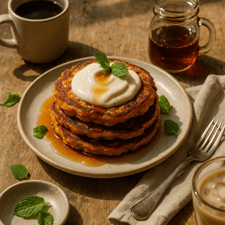 Sweet Potato Pancakes with Maple Yogurt