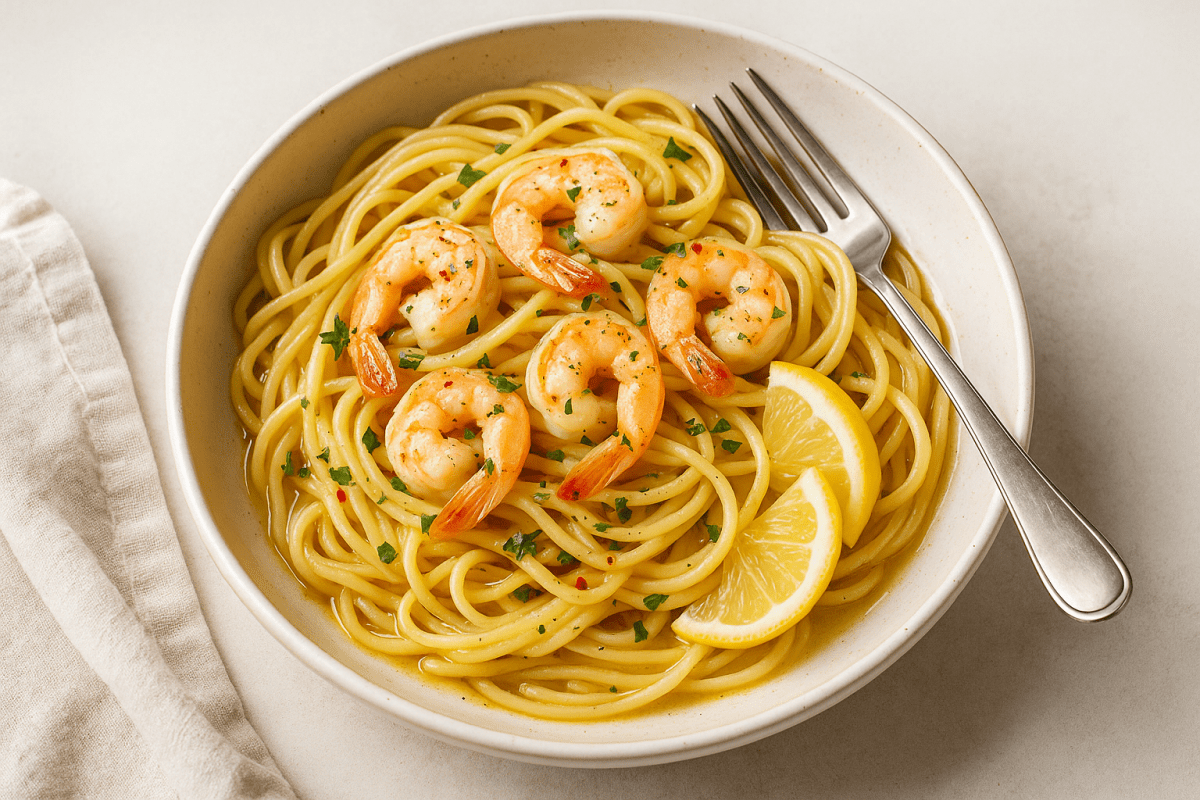 The beauty of this recipe is in the timing. While the pasta cooks, you’re searing shrimp in garlicky butter and olive oil, splashing in lemon juice like you’re on a cooking show. By the time you drain the pasta, you’ve got a sauce ready to meet it.