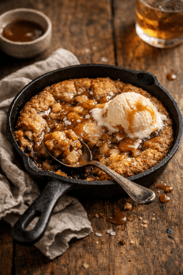 There are desserts that behave nicely, slice cleanly, and wait patiently to be plated. This is not one of them. This salted caramel apple skillet …
