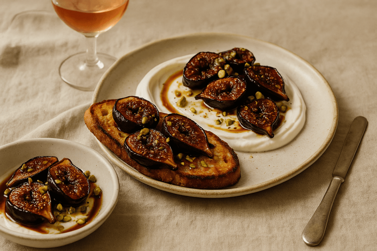 There’s something therapeutic about halving figs — like slicing through your feelings with a paring knife — then roasting them until they collapse a little under the weight of their own sweetness. Add a glug of balsamic, a swoop of yogurt or toast, and a crush of pistachios, and suddenly you’ve created a snack that feels like a full narrative arc.
