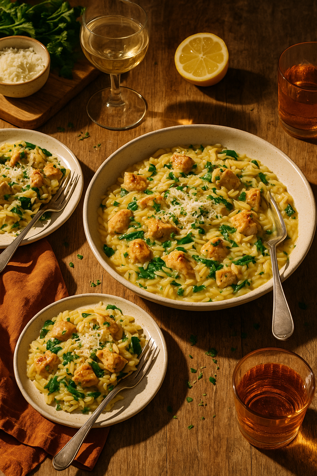 Tender bites of chicken, bright lemon zest, and silky orzo come together in under 30 minutes, with spinach wilting in at the end like it meant to be there all along. It’s cozy without being heavy, fresh without trying too hard, and exactly right for nights when your brain is done but you still want dinner to feel intentional.
