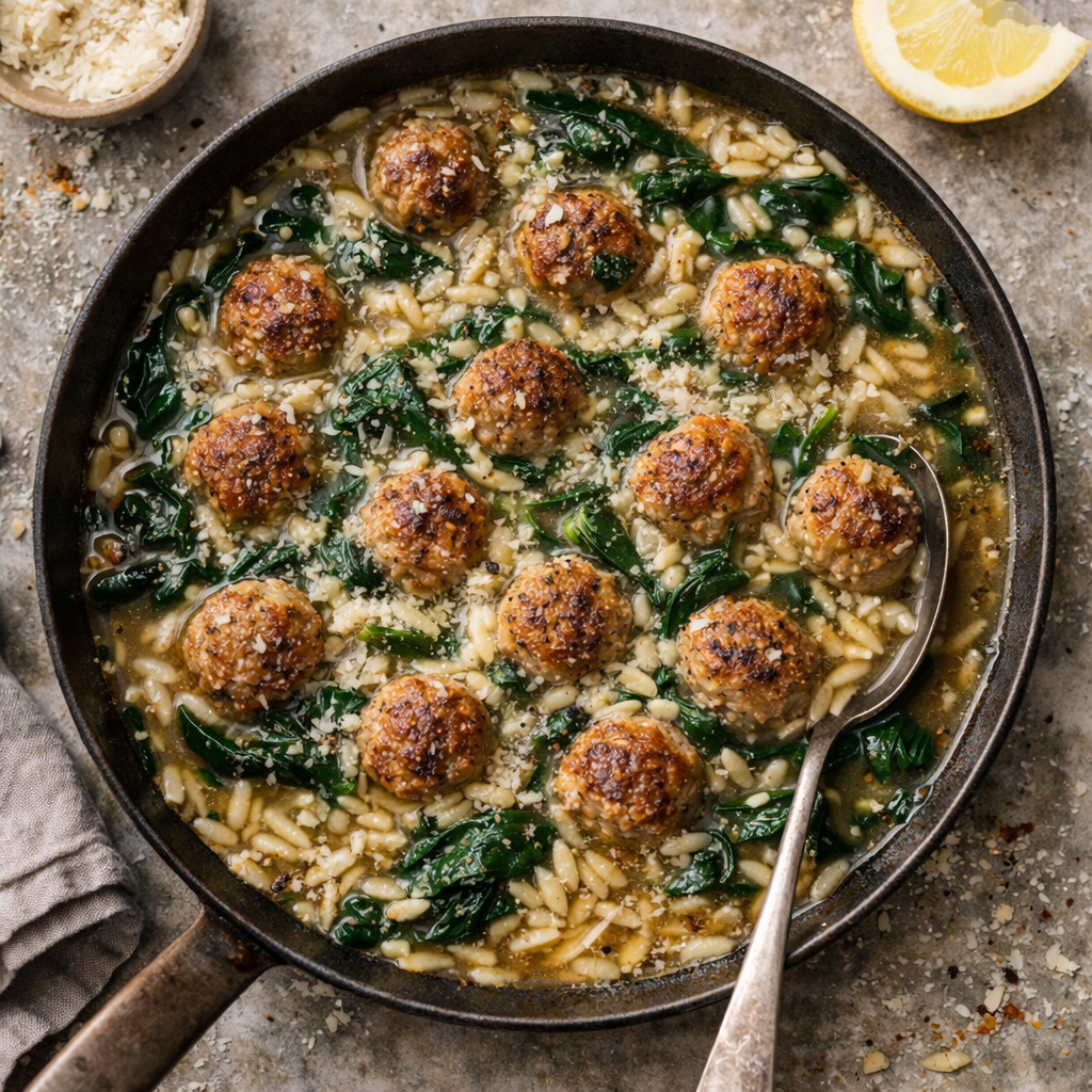 Meatballs, greens, broth — balanced, savory, and oddly elegant for something made in 35 minutes. - Flexible and fridge-friendly
