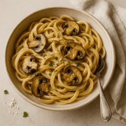 Silky pasta tangled with earthy mushrooms in a cream sauce that tastes like you actually read the recipe first. Fast, rich, and just the right amount of indulgent for a Tuesday night.