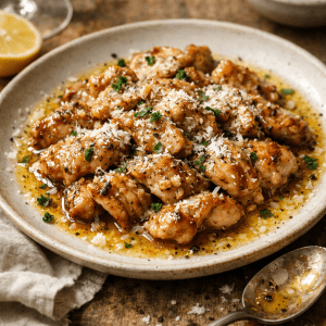 Juicy air-fried chicken thighs finished in a warm, glossy garlic-parmesan butter sauce that actually clings. Rich, savory, and unapologetically saucy.