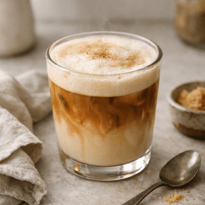 A rich, caramel-forward latte made with brown sugar syrup, espresso, and milk. Cozy, glossy, and quietly indulgent with minimal effort.