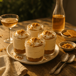 Whip up delightful no-bake Biscoff cheesecake jars, featuring creamy, spiced cheesecake and crumbled cookies for a chic and easy dessert.