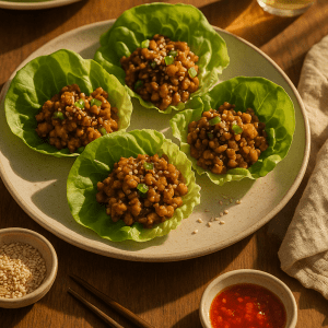 Glossy, sweet-salty ginger chicken spooned into crisp lettuce cups — a weeknight-friendly take on classic American-Chinese lettuce wraps.