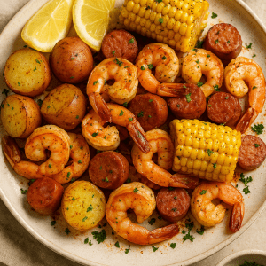 All the glory of a dockside seafood feast, none of the drama. This is a one-pan, toss-it-in-the-oven move that makes your kitchen smell like a vacation rental in a good way. Juicy shrimp, buttery corn, garlicky potatoes, and just enough spice to feel like you planned this days ago instead of… you know… 20 minutes ago.