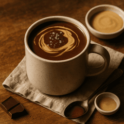 A sumptuous blend of rich cocoa and creamy tahini in this hot chocolate offers an exotic twist and comforting warmth with Middle Eastern charm.